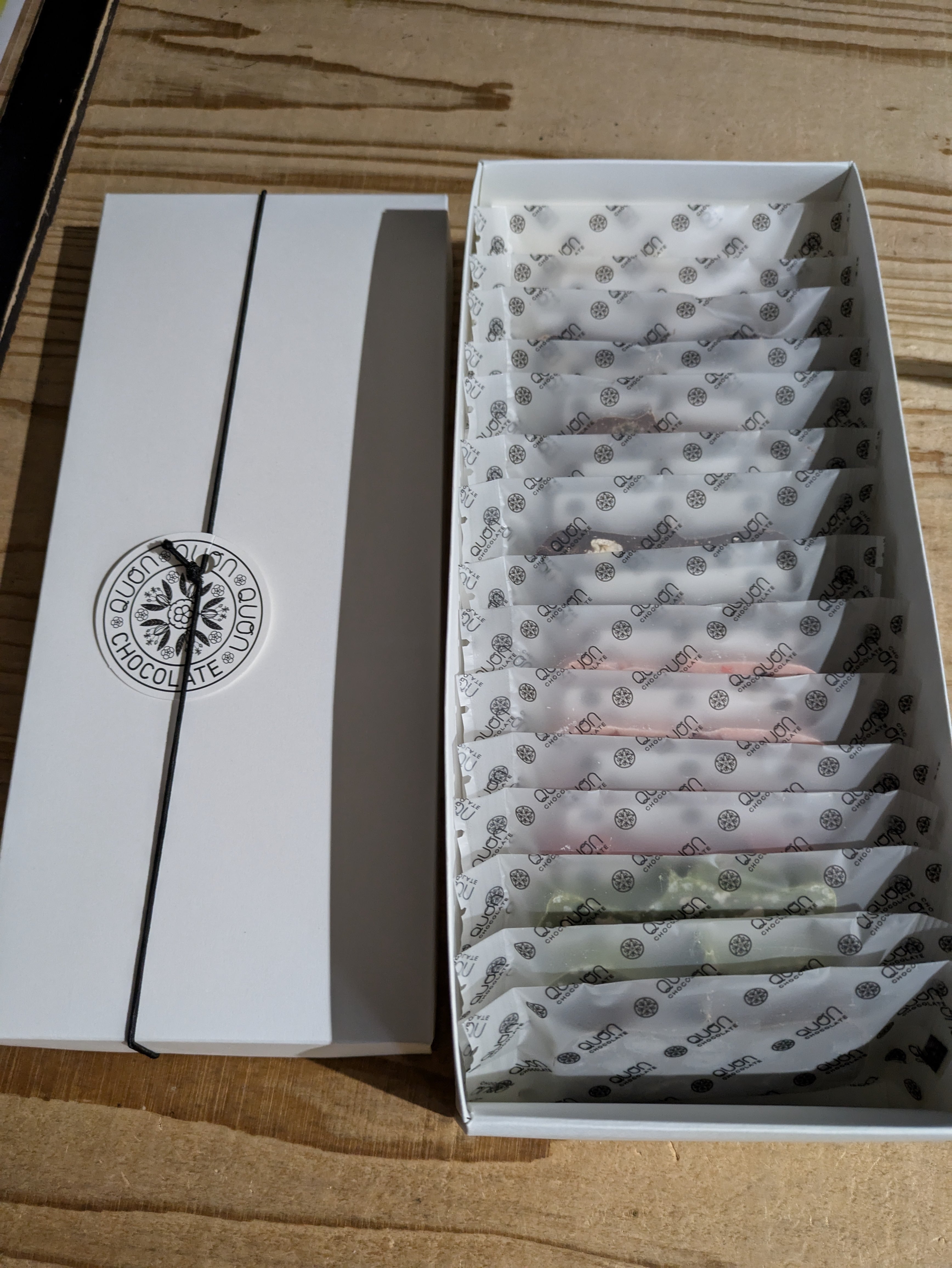 ・テリーヌ・・・QUONチョコレートの代名詞商品『QUONテリーヌ』上質な世界各地のカカオをベースにドライフルーツやナッツ等を詰め込んだ個性溢れる美味しさ。おすすめの15枚をセレクト致します。